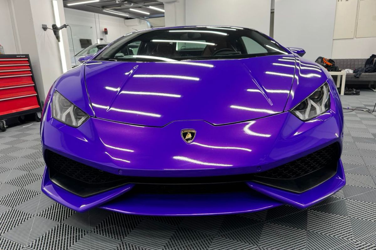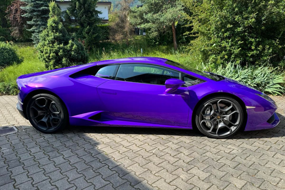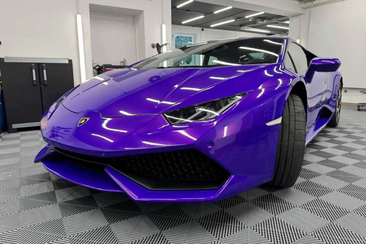 Vozilo oblečeno v plum explosion sijaj folijo.